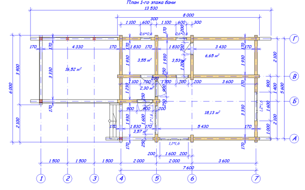 Баня 6х8м+барбекью 3,9х4,7м из клееного бруса 130х160мм