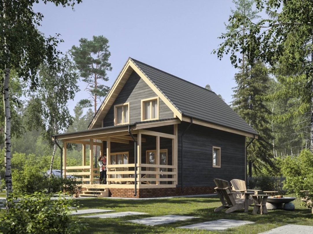 Форма крыши дома – мансардная двухскатная (или ломаная) с каркасными фронтонами. Кровельное покрытие – оцинкованные гофролисты. В комплект кровли входят: кровельные гофролисты, коньковые элементы, крепежи. Под конек прокладывается утеплитель от задувания снега.