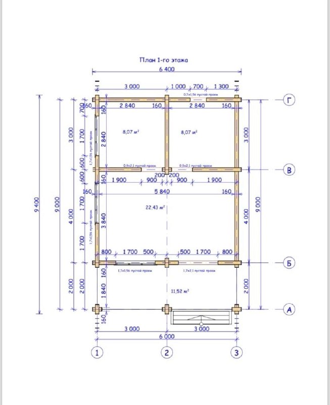 Описание одноэтажного дома 6,4х9,4 м из клееного бруса 130х160мм